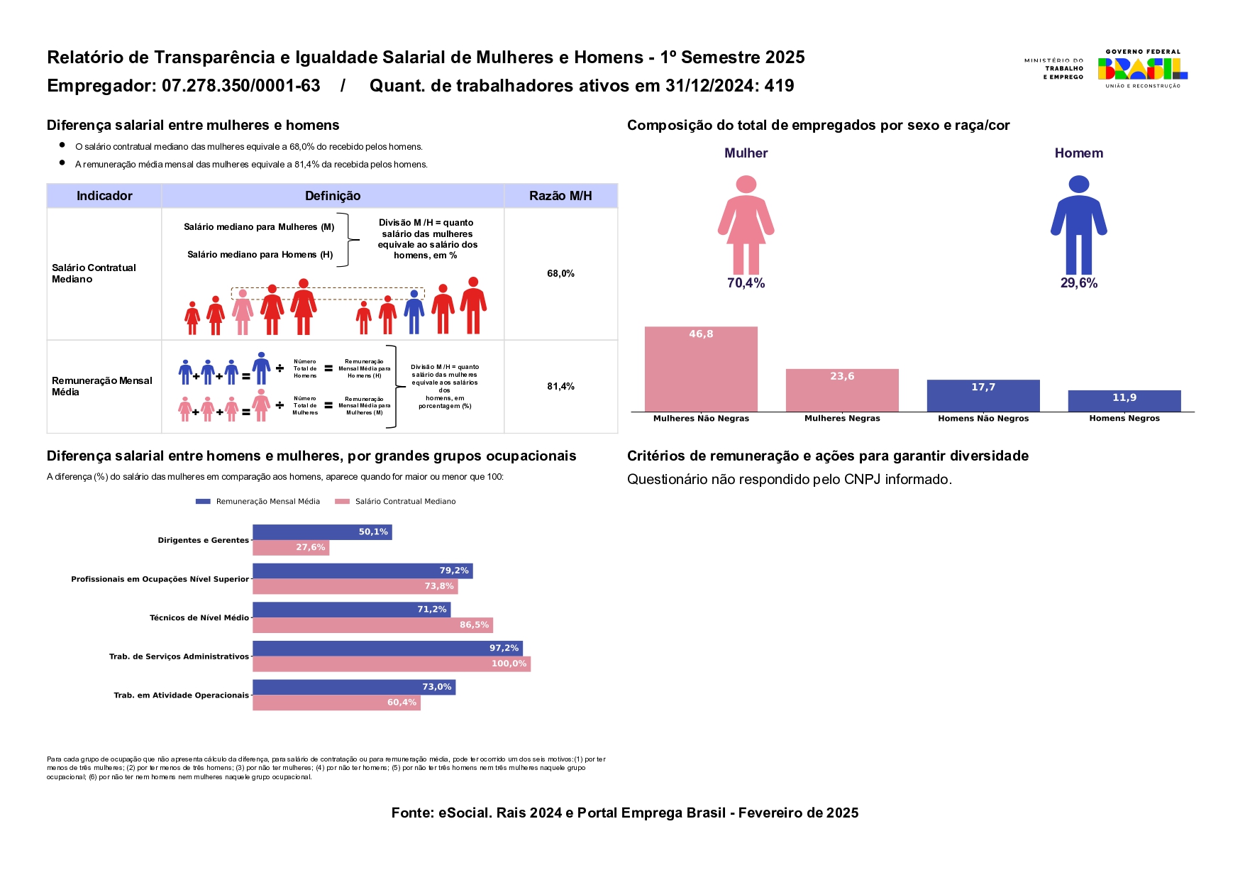 O mencionado Relatório foi elaborado pelo Ministério do Trabalho e Emprego ("MTE") com base nas informações contidas no Sistema E-Social.