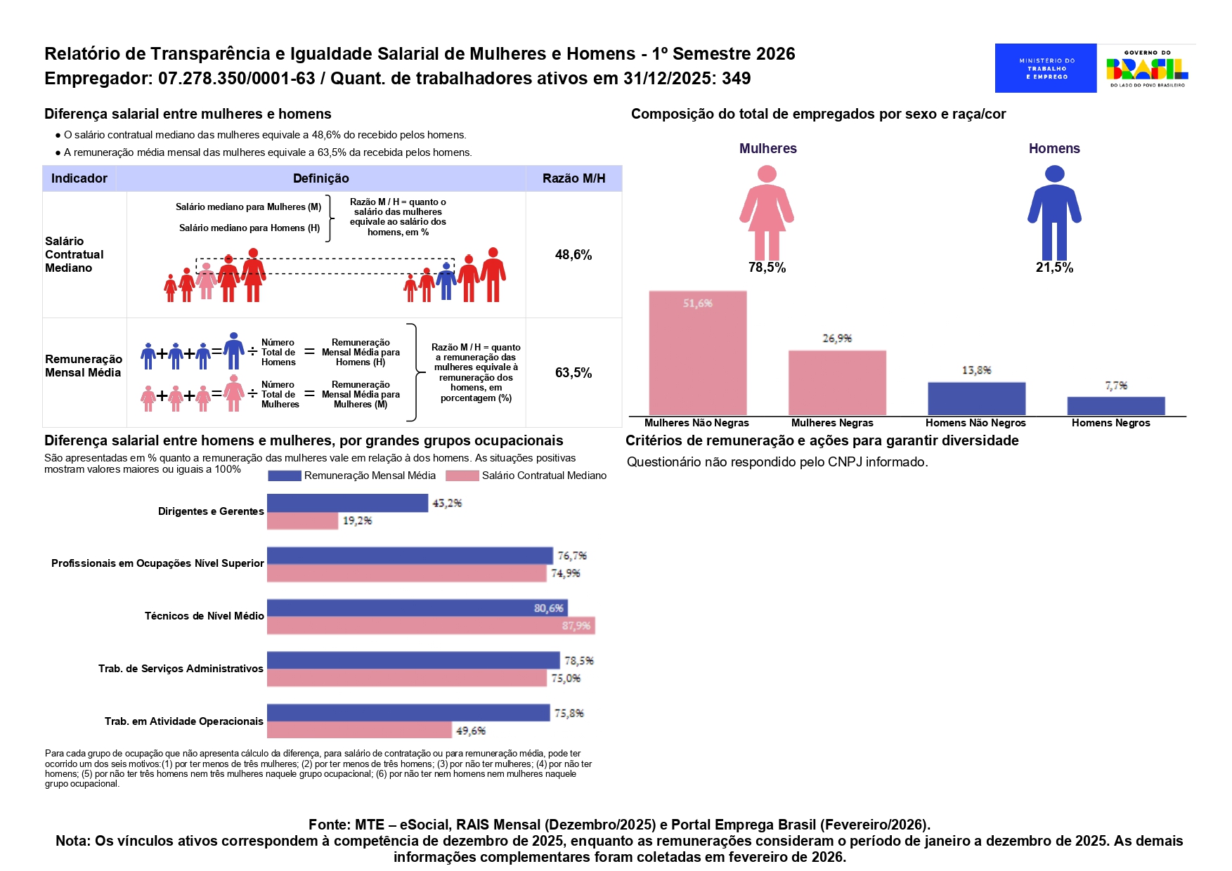 O mencionado Relatório foi elaborado pelo Ministério do Trabalho e Emprego ("MTE") com base nas informações contidas no Sistema E-Social.